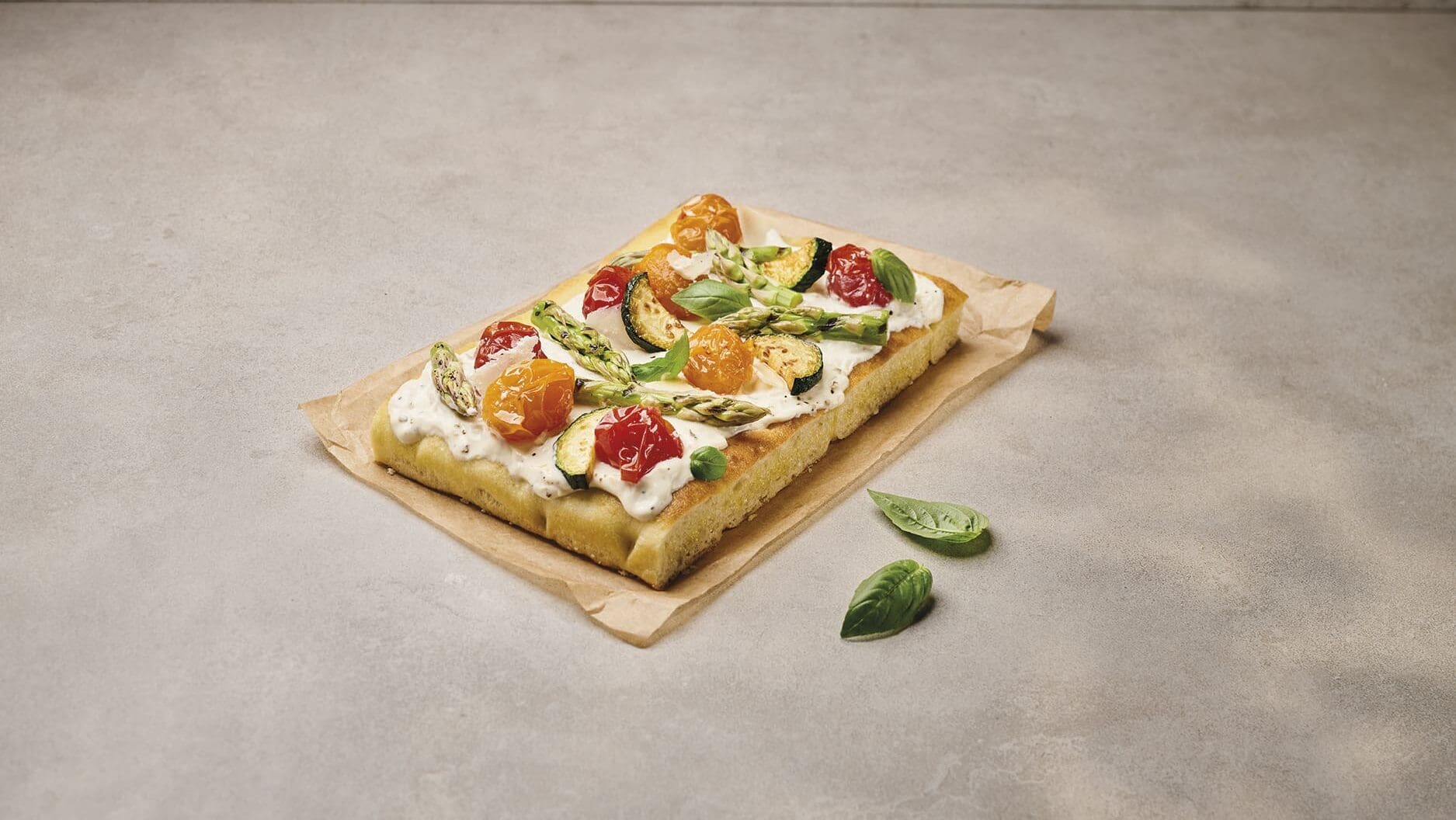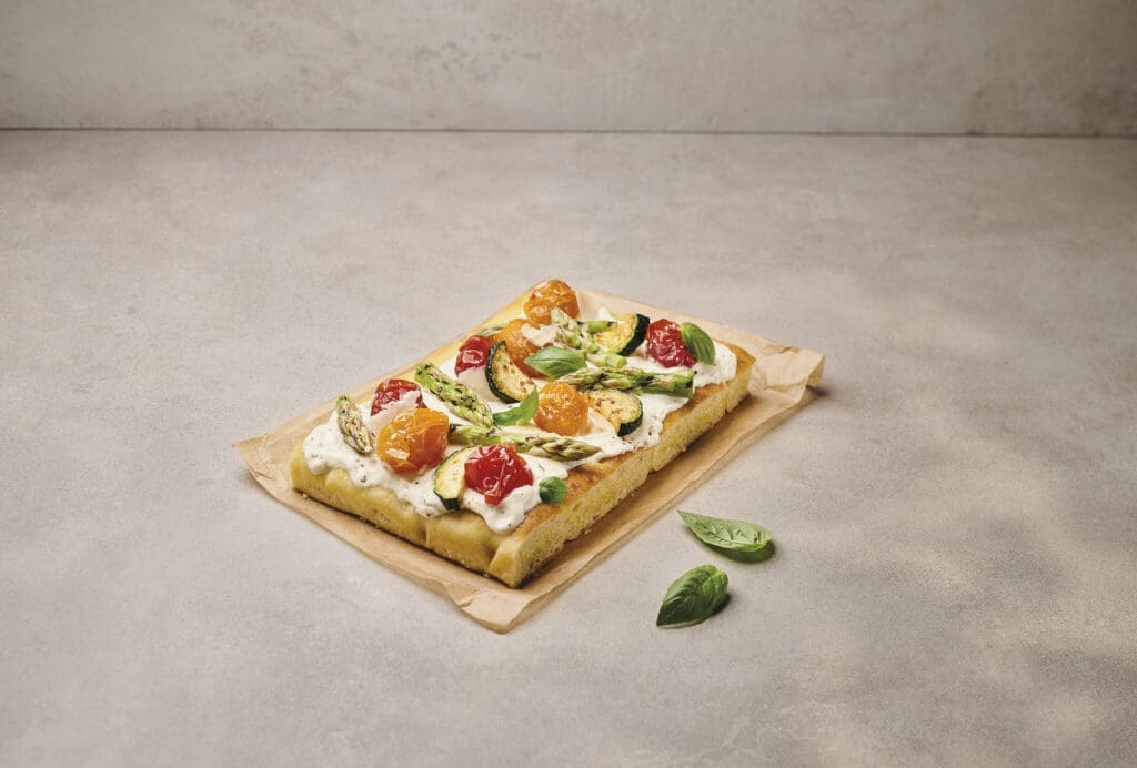 With its distinctive truffle flavour, Boursin® Professional Cuisine makes it easy to recreate a classic truffle focaccia, elevated with fresh asparagus, sun-dried tomatoes and zucchini.